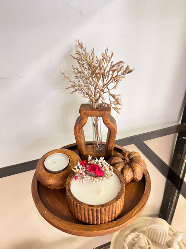 ست شمع سینی گرد ۲۰سانتی طرح چوب