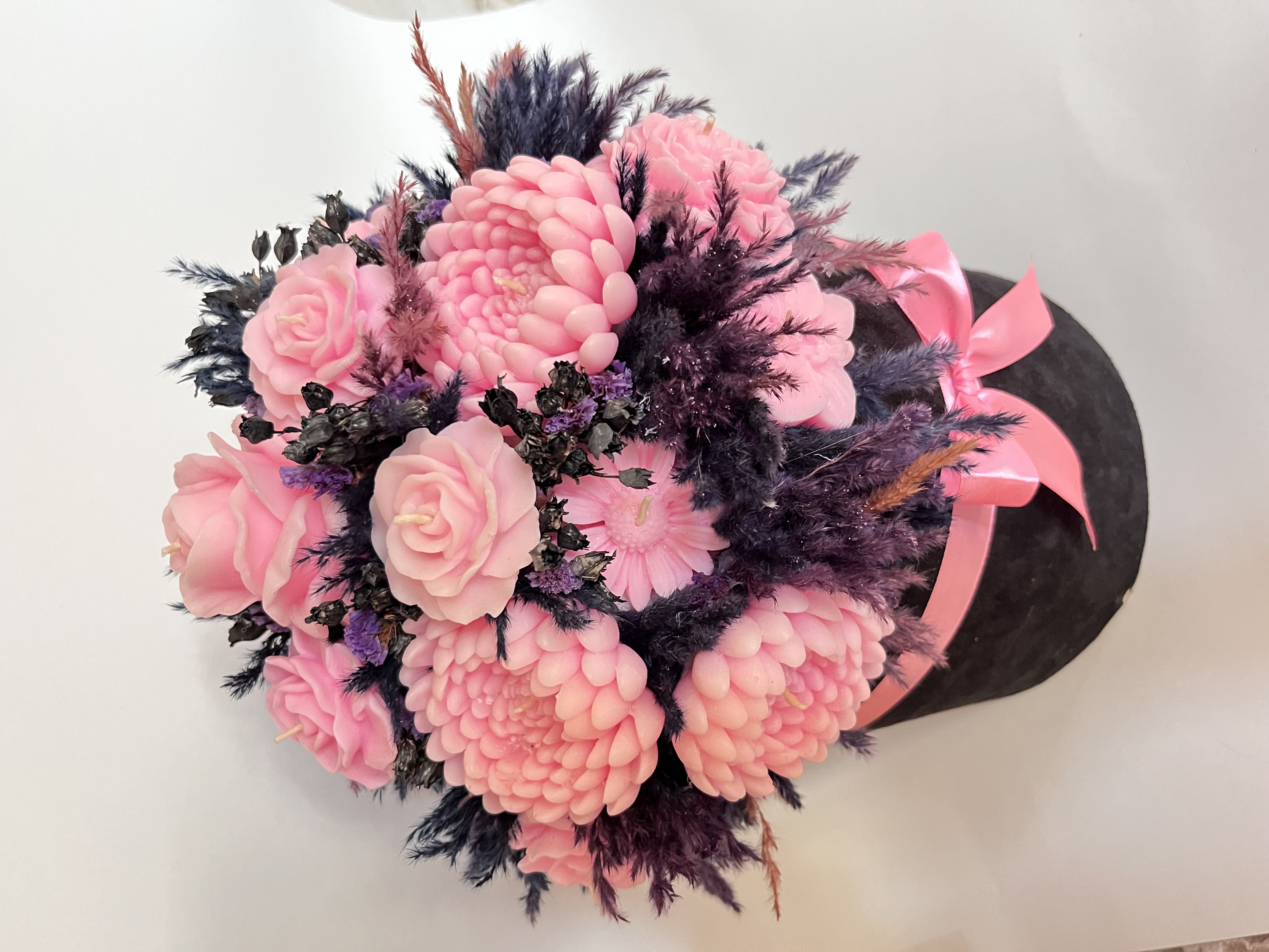ناموجودباکس گل شمعی متوسط مشکی صورتی